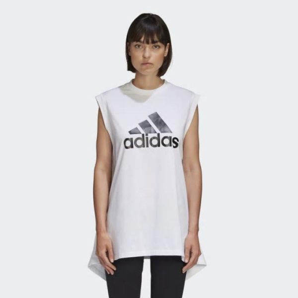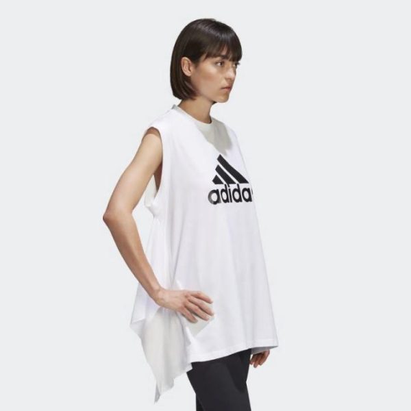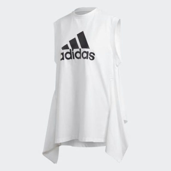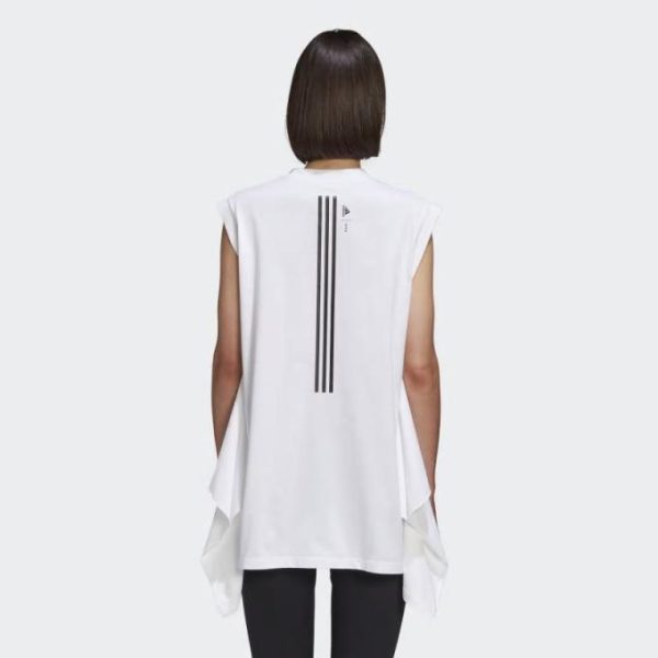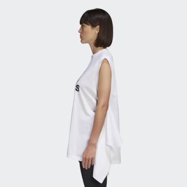 - Sleeveless tee with a unique silhouette